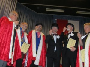 Gern hätte auch Hammerschmied Bernd Matthaei diesen hohen Akt des Ritterschlags miterlebt, doch – wie die Gesellschaft später erfuhr – versagten am Morgen die Musikboxen auf dem Hammerschmiedwagen, der ja im Hasper Kirmeszug mitfahren sollte. So mussten neue Boxen organisiert werden, was der Hammerschmied und sein Team mit Bravour bewältigten, doch so kam er leider einige Minuten zu spät, um dem Ritterschlag beiwohnen zu können.